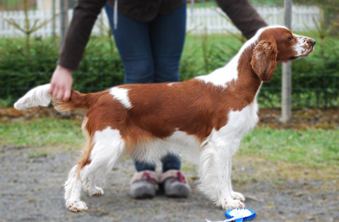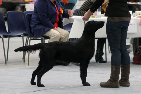 Hyvä rinnansyvyys. Hyvä luusto ja tassut. Leveä hyvä reisi.